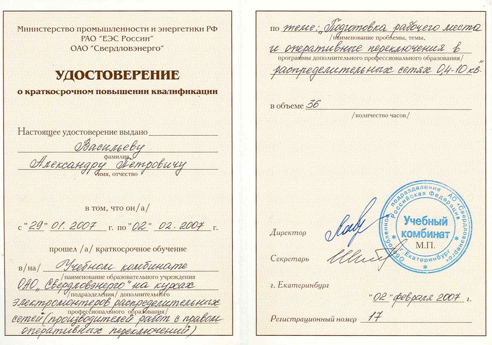Учебный комбинат ОАО «Свердловэнерго»