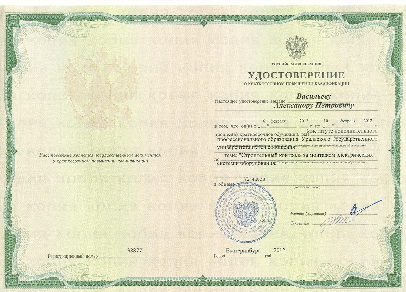 Курсы повышения квалификации "Строительный контроль за монтажом электрических систем и оборудования"
