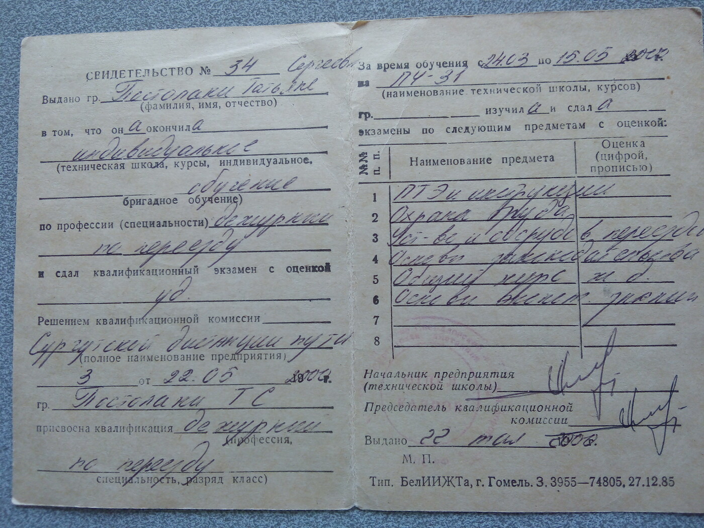 С 2000 года работаю Дежурной по переезду ,через жд переезд пропускаю грузовые поезда ,закрываю открываю шлагбаумы ,рация телефон ,видеонаблюдение .Так же по совместительству работала в охране Спопат ,выписывала пропуска ,снимала и ставила склады на сигнализацию ,отвечала на телефонные звонки . Так же работала в охране Mantracvostok на видеокамерах ,принимала звонки обходов и т.д . работала в такси водителем .Ищу работу в поселке Дорожный ,район Аэропорт на постоянной основе в связи с переездом .