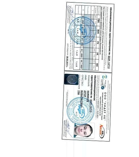 Удостоверение: с 2015 года Инспектора неразрушающего контроля 2 уровень